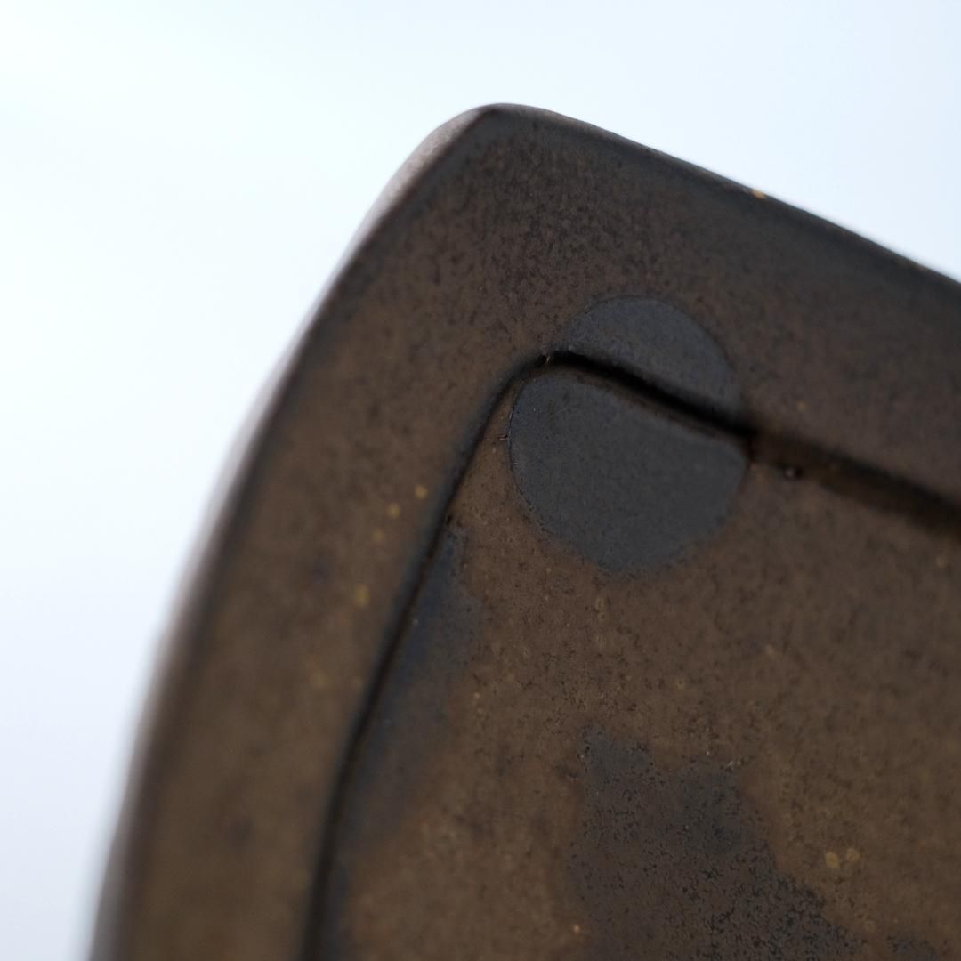 福岡県小石原の山あいで、現代の暮らしにあう器を作り続ける「翁明窯元」。焼き上がりによって色味が異なり、まだらな水玉模様が渋い角皿です。