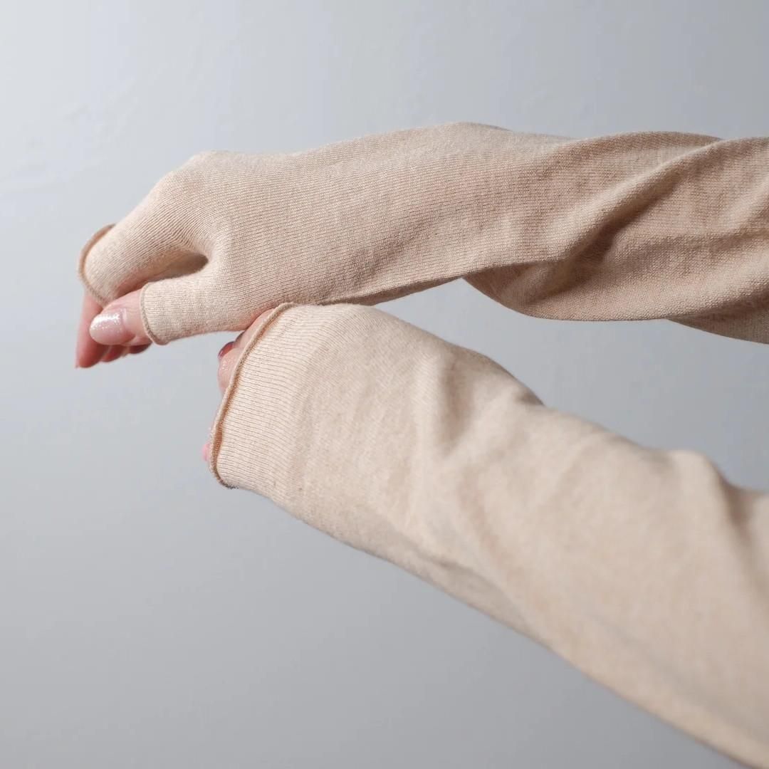 オーガニックコットン100%のUVケアカバーです。手の甲から二の腕まですっぽりと覆ってくれるロングタイプ。冷房対策にもお勧めです。