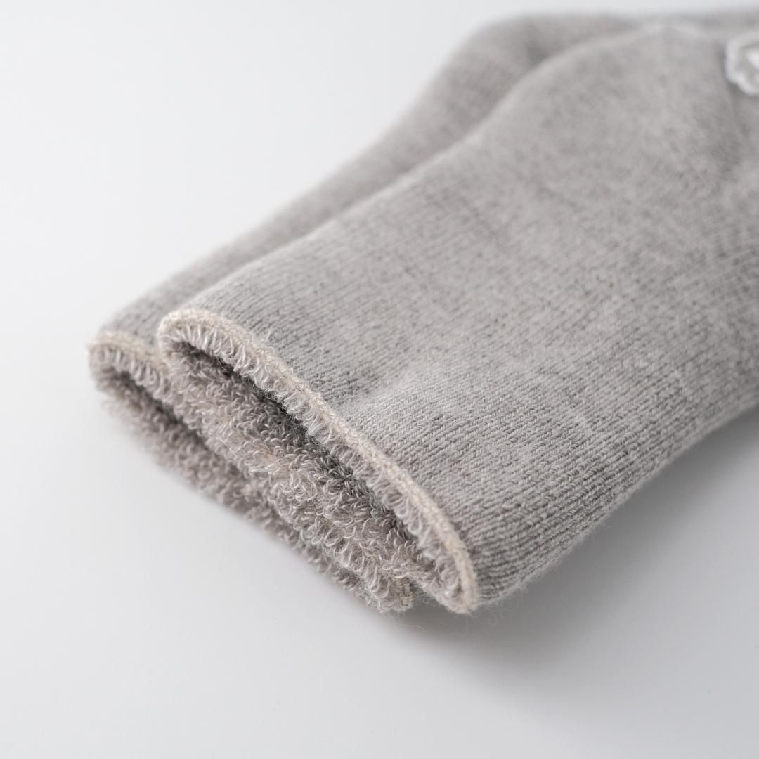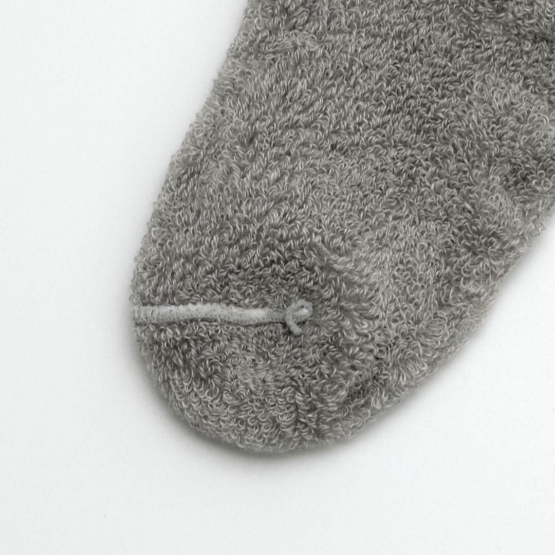 内側がパイル編みで、赤ちゃんの足にやさしい肌触りのベビーソックスです。オーガニックコットンの生成と地層の色素で