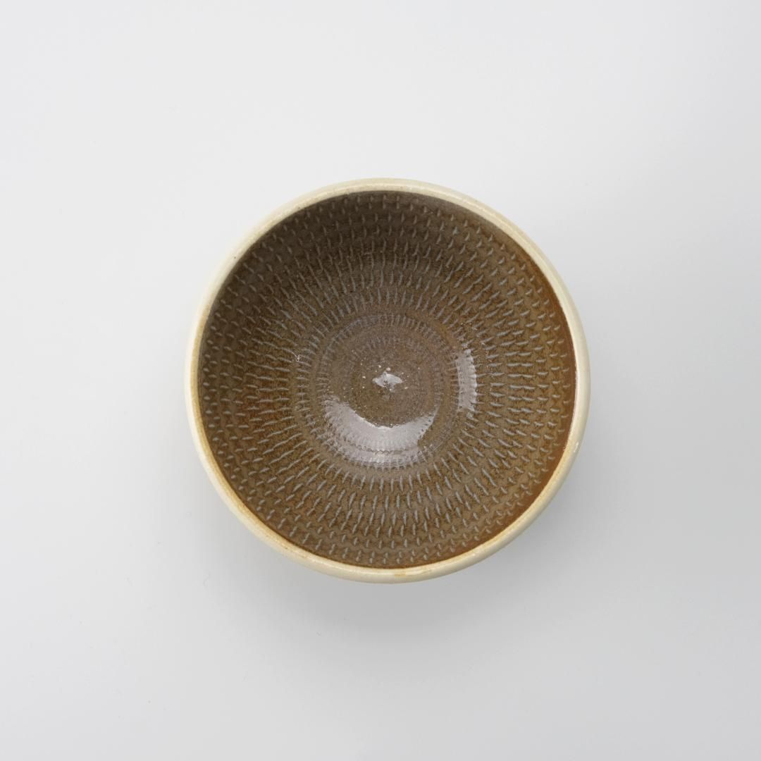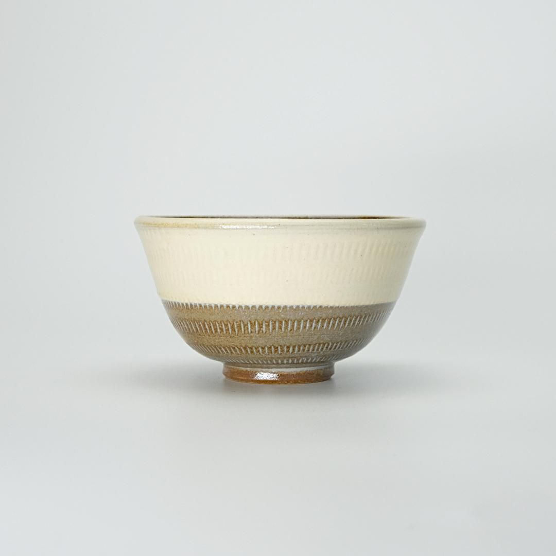 福岡県小石原の山あいで、現代の暮らしにあう器を作り続ける「翁明窯元」。伝統のとびかんなをベースに、飯碗外側のツートンカラーがおしゃれな飯碗です。