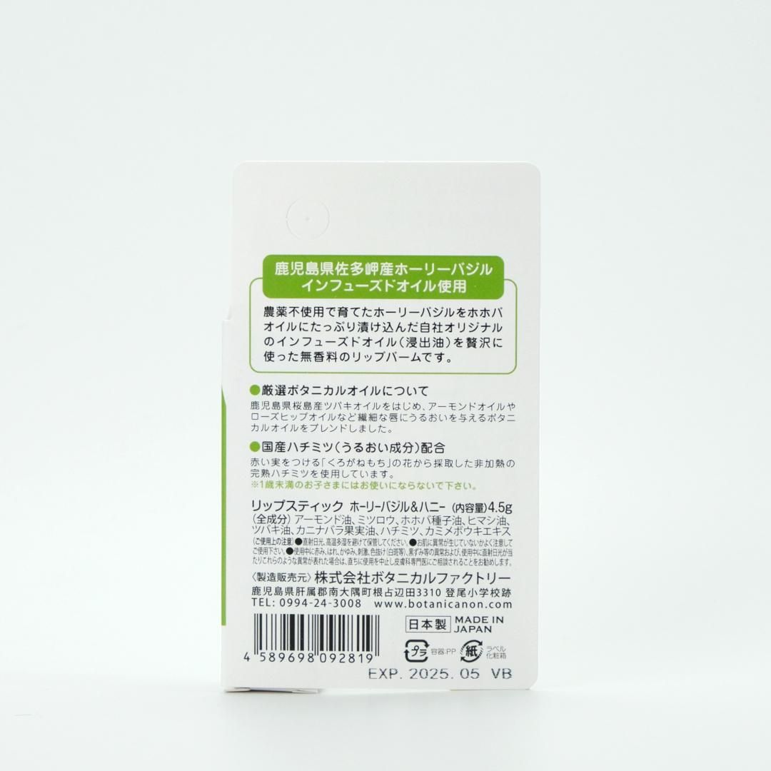 【鹿児島県産原料】ホーリーバジル(カミメボウキ)、ツバキ油、ハチミツ