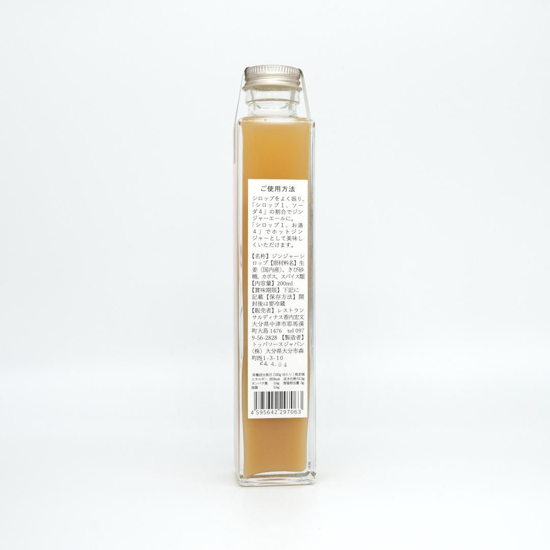 大分県の景勝地 耶馬渓にあるレストラン サルディナスが作る辛口ジンシャーシロップです。