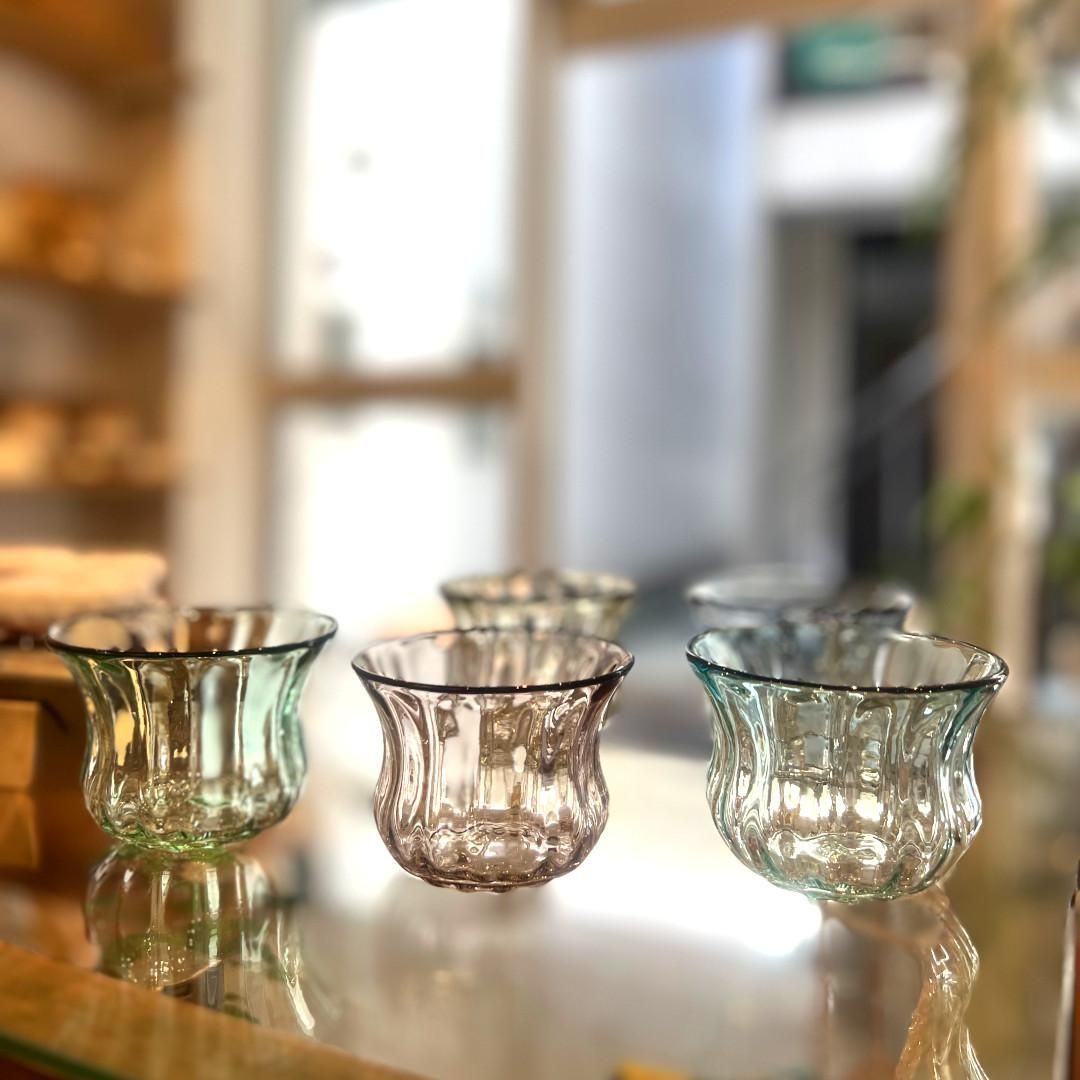 沖縄県名護市で、廃瓶から器を生み出す琉球ガラス工房 「glass32」 。やんばるの海や自然を見ているかのような透き通った器たち。水出しの緑茶や和紅茶にぴったりの冷茶グラスです。