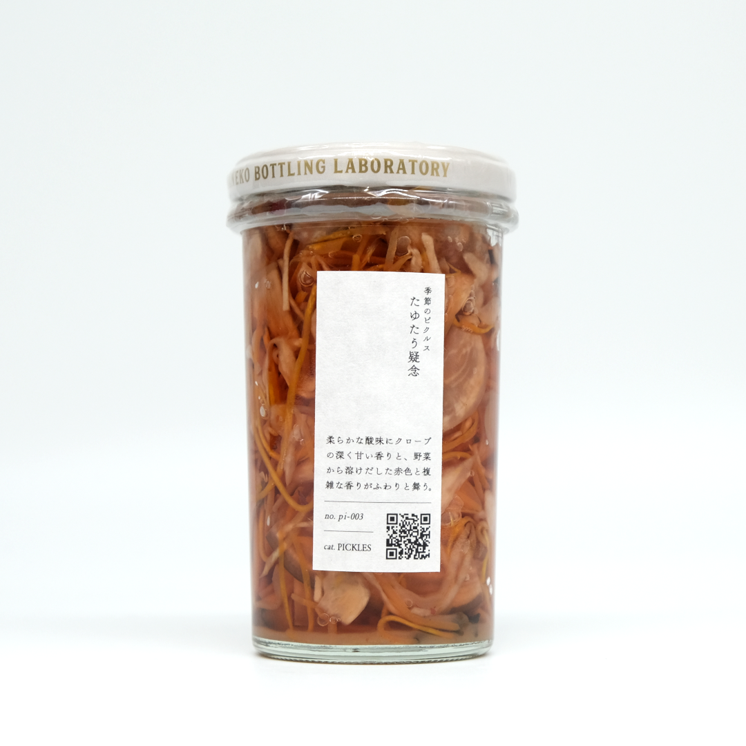 枕崎の鰹節を使ったスパイスカレーの素とクローブの深く甘い香りのピクルスに、ほっこり優しいほうじ茶のセット。お土産や料理好きな方への贈り物にも喜ばれます。