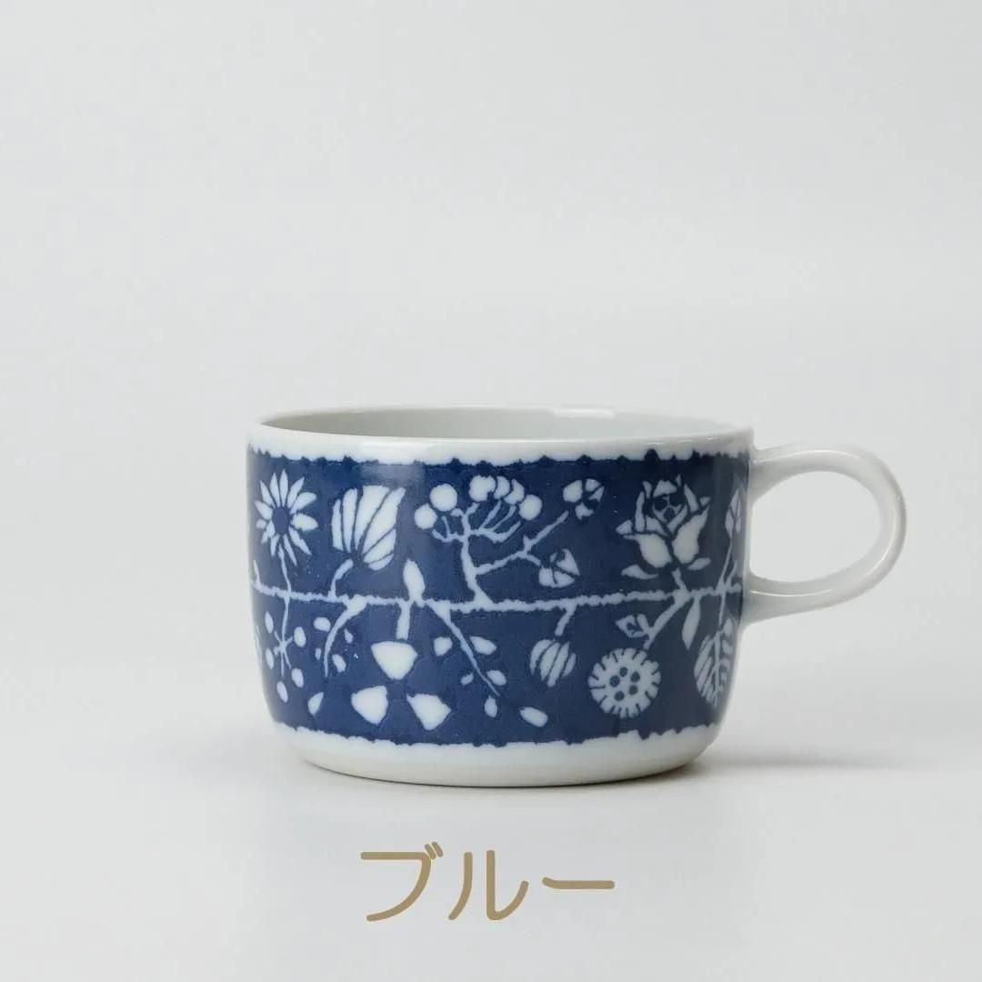 波佐見焼「和山窯」のフラワーパレードシリーズ。少し背が低めのマグカップ。スープカップとしてもお使いいただけます。