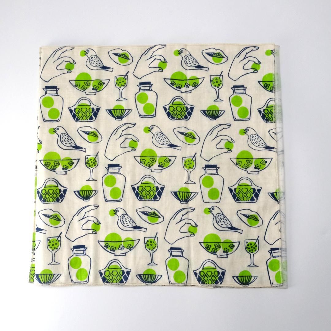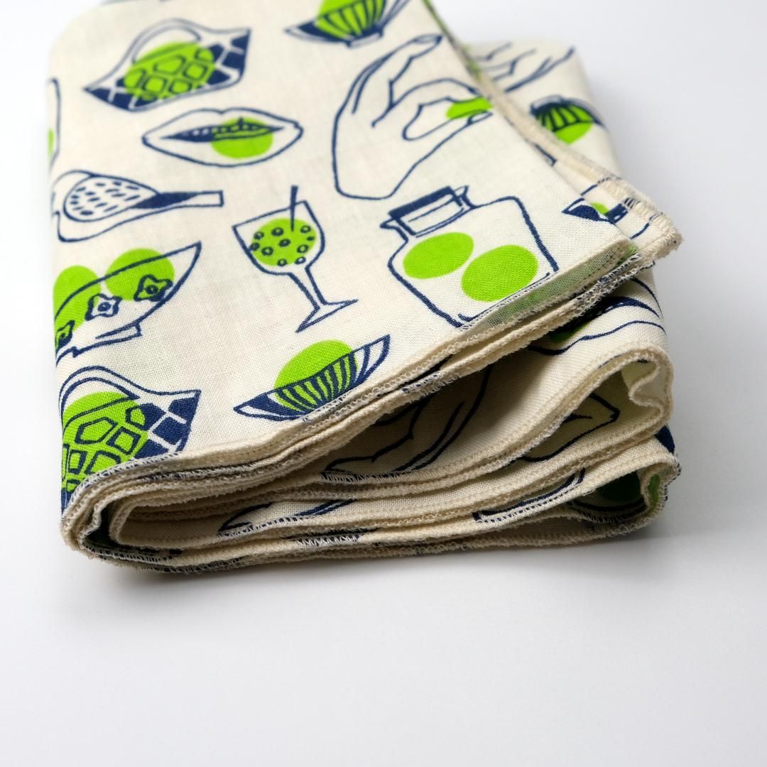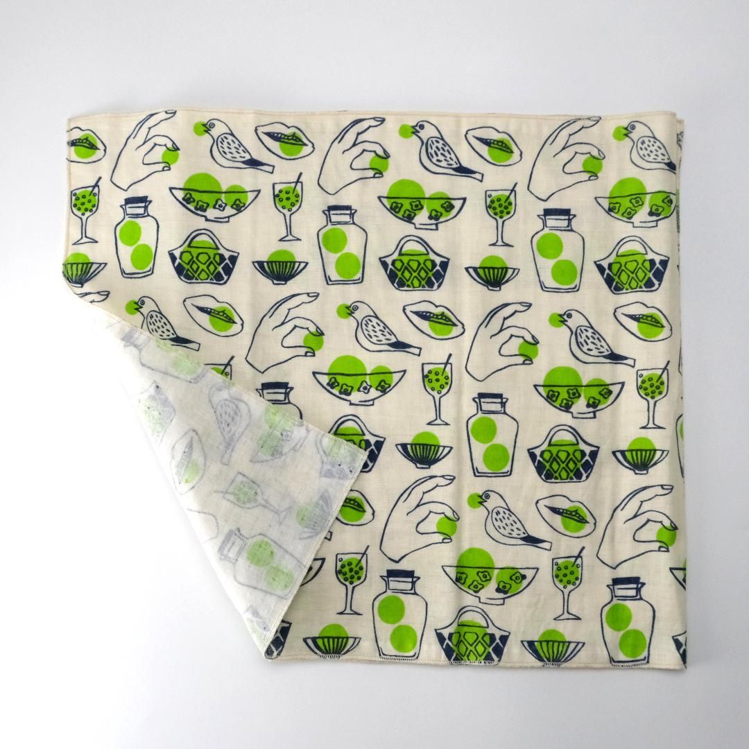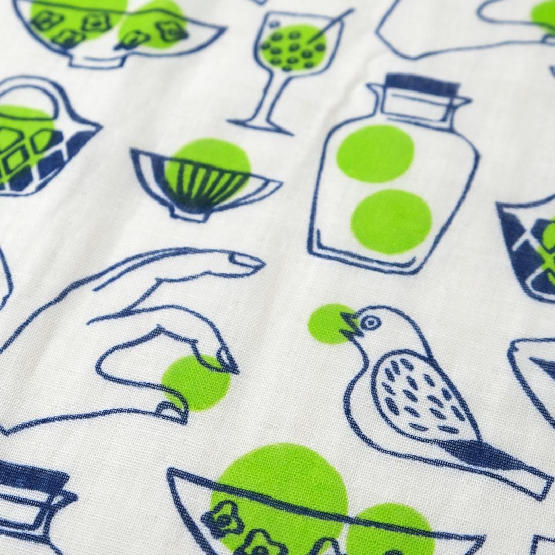 makumoとは、音も形もわからない古い古い管楽器の名前。どんな形でどんな音色なのか、想像する“わくわく感”が名付けの由来です。賑やかなデザインの線と色の不思議な布たちは、日々の暮らしに楽しさを与えてくれる一枚です。