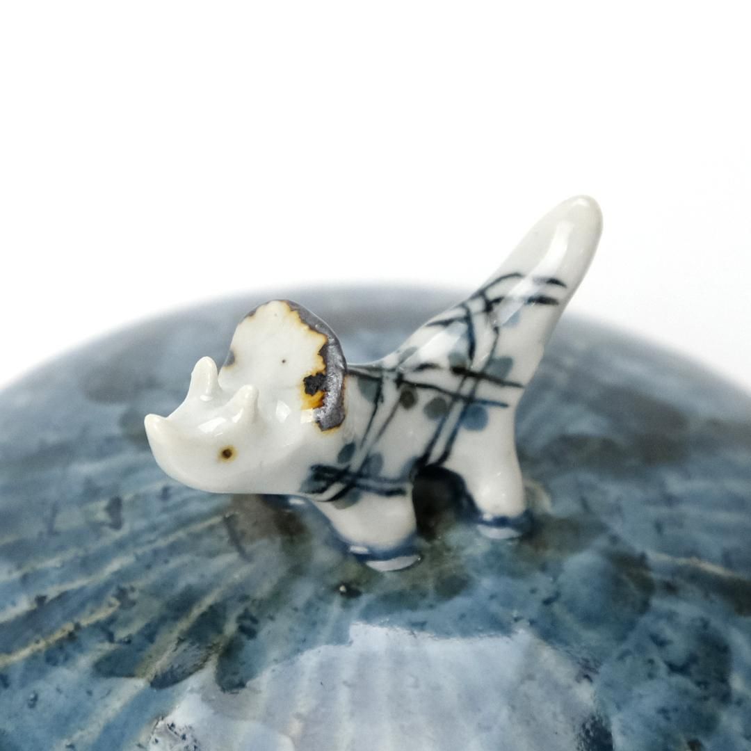 毎日の食卓がほんの少し楽しみになる器 ・恐竜 をモチーフにした「 studio wani 」 DINOSAURシリーズ。取手の部分がトリケラトプスになった蓋付きの入れ物。