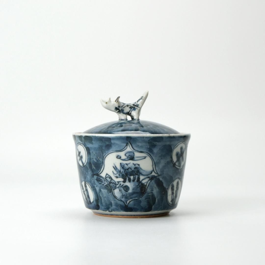 古伊万里をテーマにしたdinosaurシリーズ 骨董のような風合いを出すため、鉄分の多い磁土を混ぜ、わざと鉄粉が出るようにしています。