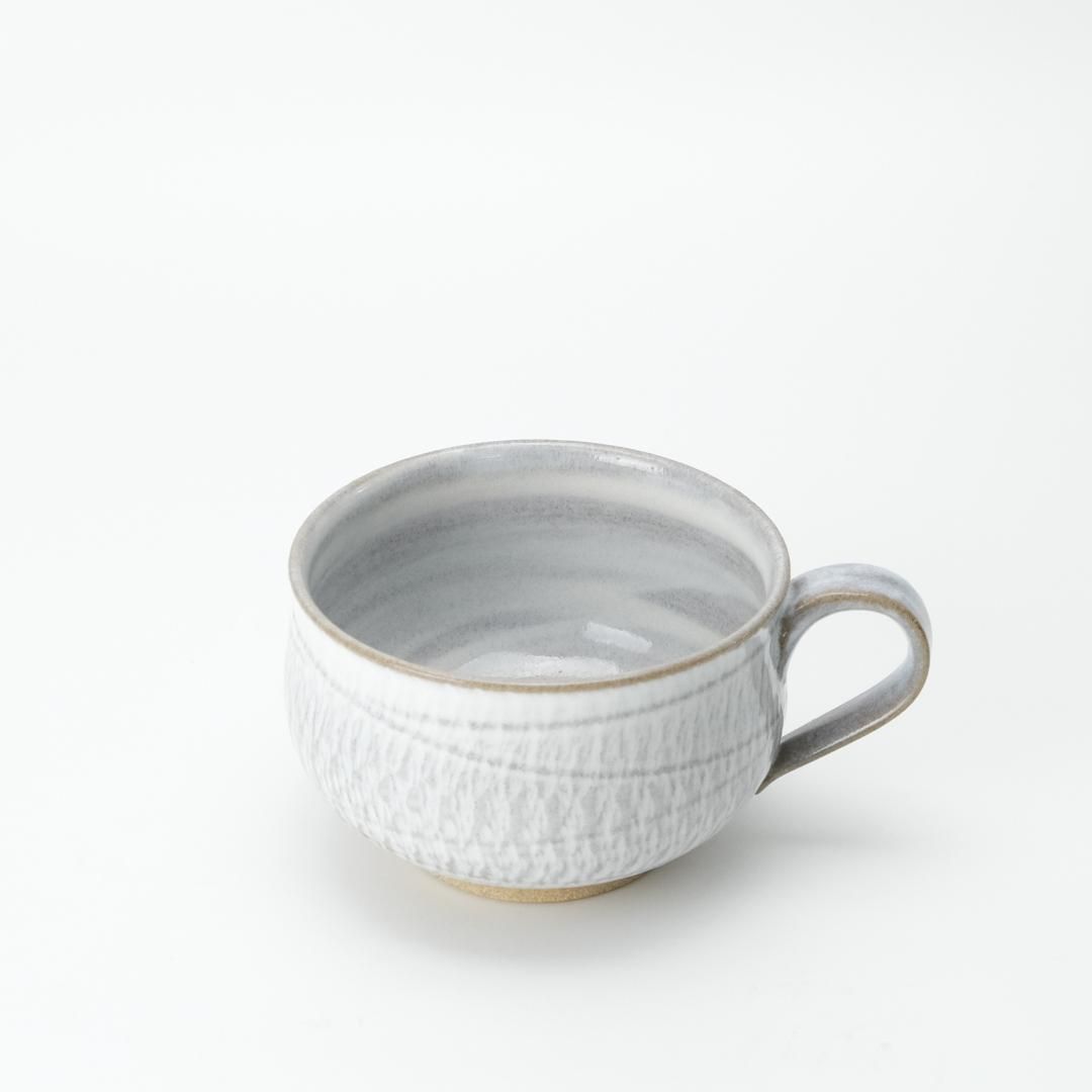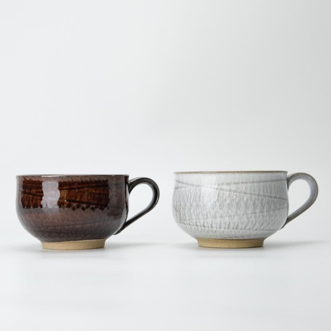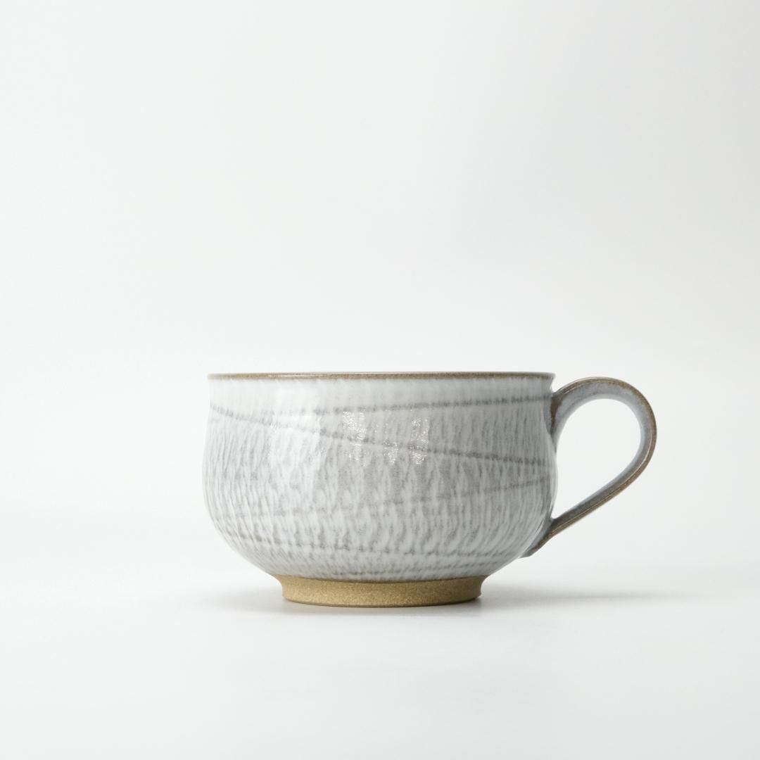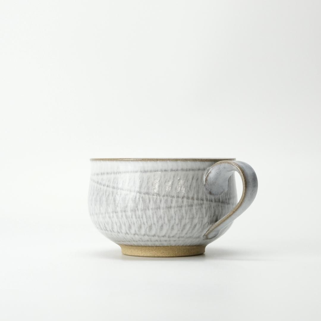 小石原の伝統を受け継ぎ、自然とともに生まれる器「圭秀窯」。手にすっと馴染む、やさしい風合いのスープカップ。口が広く浅めの形状で、スープはもちろん、サラダやヨーグルトにも使いやすいデザインです。