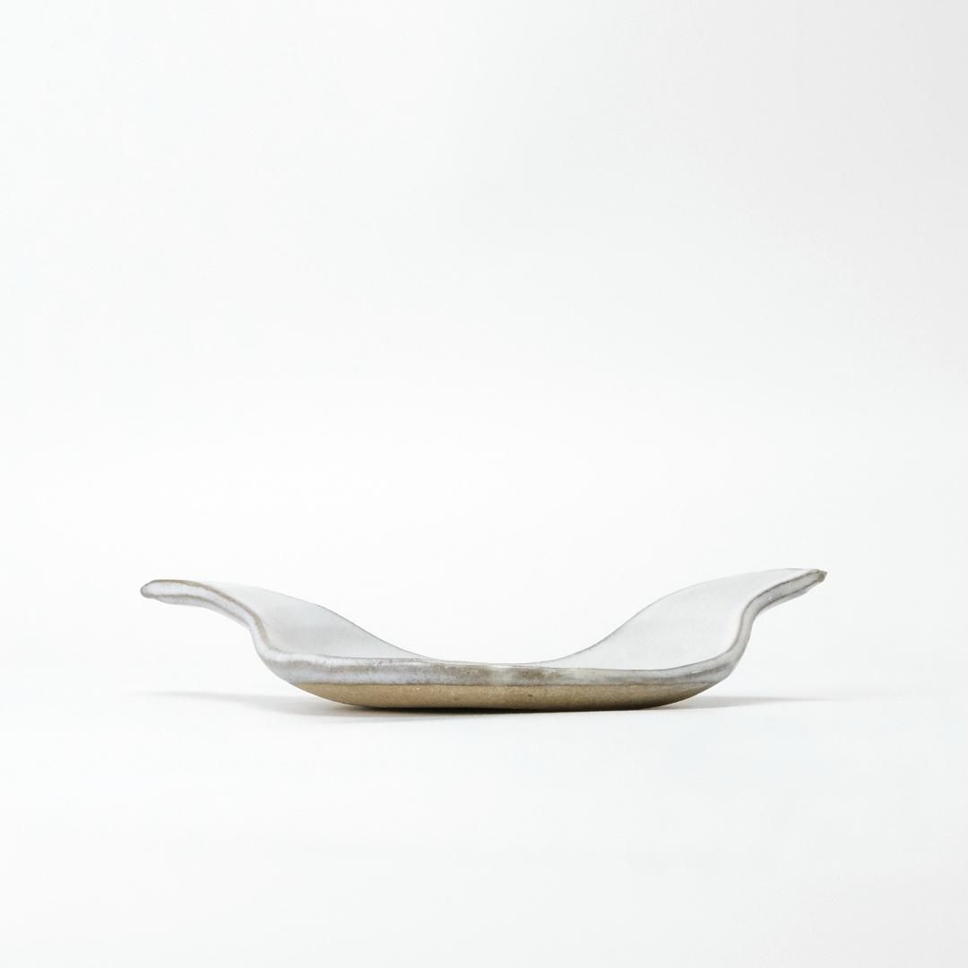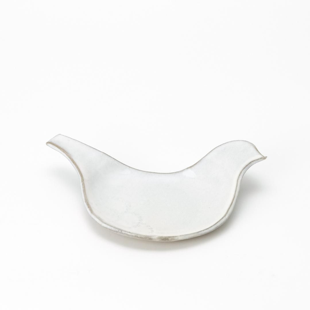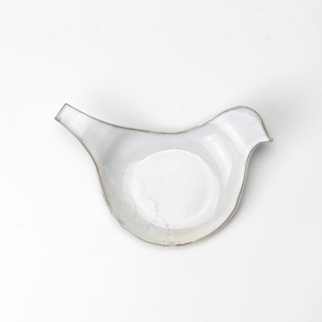 小石原の伝統を受け継ぎ、自然とともに生まれる器「圭秀窯」。やさしい白釉に、とりのかたちの豆皿。
